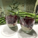 В стаканчики выложить селедочный паштет. -
