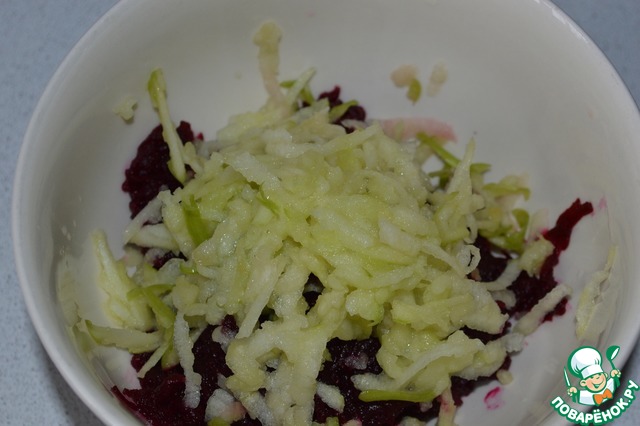 Яблоко натереть на крупной терке, соединить со свеклой.