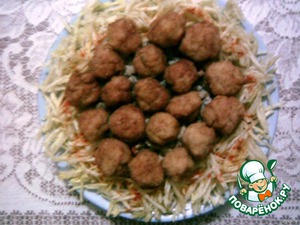 Нежные румяные куриные тефтельки в сухарной корочке устроились в уютном гнездышке из картошечки и грибочков, припорошенные легким сырным снежком...