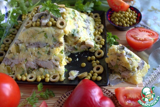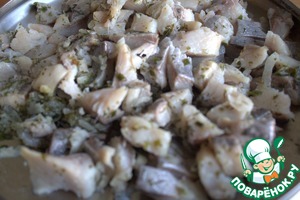 4-й: селёдочка. По желанию оставим кусочки для украшения.