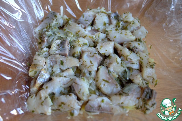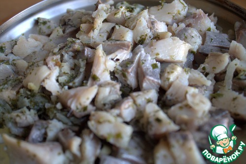 Сельдь у меня молосольная, с луком и зеленью. Её фишка в том, что она без масла!