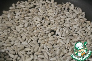 Семечки, очищенные, обжарить слегка на сухой сковороде. |