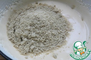 Семечки пробить почти в пыль и ввести в яичную массу очень аккуратно - снизу вверх.