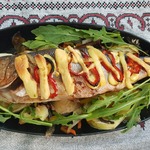 -присолить всe , поперчить . прижать слегка . нанести зигзаг майонеза .