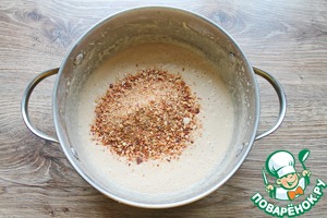 Всыпьте пралине, оставив немного для украшения. Все перемешайте до равномерного распределения пралине.