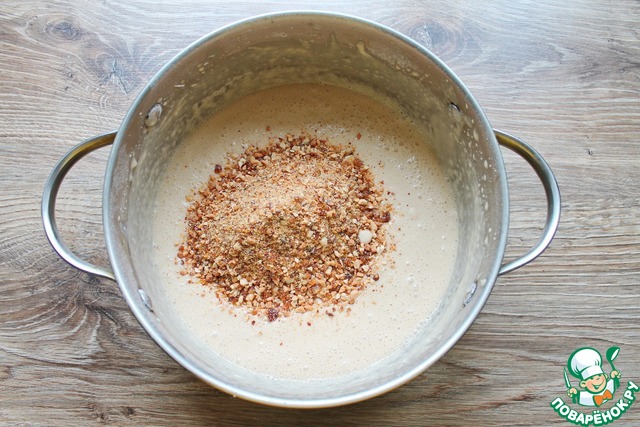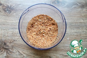 После того как орехи остыли, поломаем и все на куски и превратим в крошку при помощи блендера.