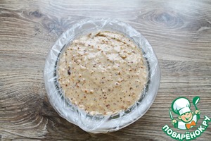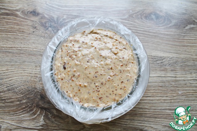 Форму, у меня круглая ваза, поэтому не могу сказать объем, застелем пленкой и сразу переложим в нее массу. Разровняем поверхность и уберем в холодильник на 2-3 часа.