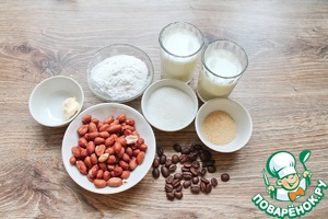 Для начала подготовим все необходимые ингредиенты для приготовления нашего кофейного суфле. Вместо заварного кофе можно взять растворимое, но увеличьте его количество. Вместо арахиса, можете взять любые другие орехи. Сварите кофе и остудите.