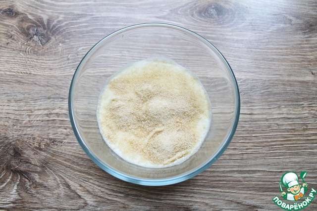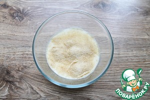 В миску нальем холодное молоко, и насыпать желатин. Оставим все на 40 минут для набухания. Затем распустите желатин до однородности и остудите.