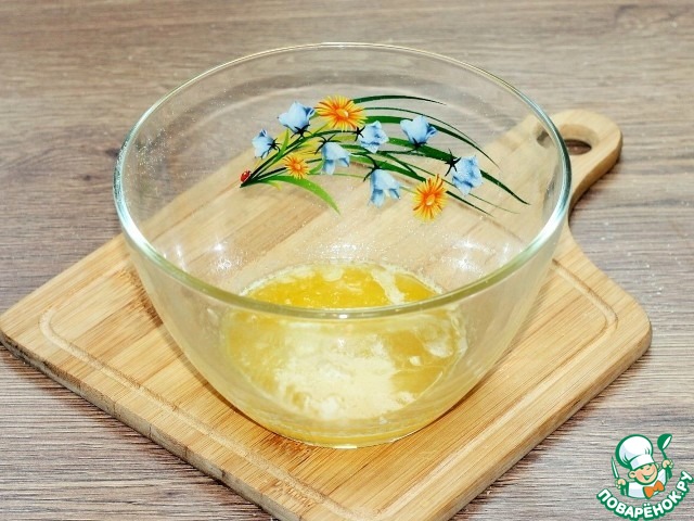 2. Растопить сливочное масло в микроволновке и добавить сахар (2 ст. л.), перемешать до растворения сахара.