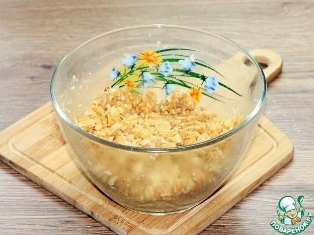 3. Растопленное масло смешать с вафельной крошкой, а затем измельчить блендером в однородную массу.