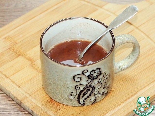 7. Залить желатин (2 ч. л.) остывшим кофе (50 мл) и размешать ложкой до полного его растворения. Убираем желатин в сторону для набухания.