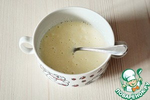 Яйца смешайте с сахаром, ванилином и крахмалом в однородную массу
