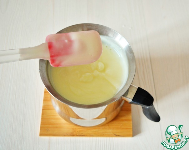700 мл молока доведите до кипения, введите при помешивании яичную массу, проварите до загустения около 3-5 минут. Постоянно помешивайте!