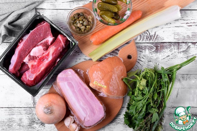 Ингредиенты для «Мясной террин с корнишонами и зеленью»: