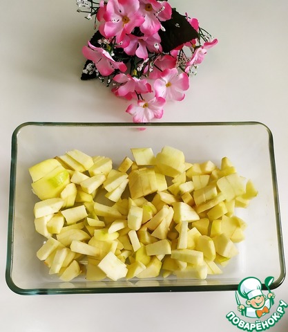 Яблоки очистить от кожуры и сердцевины, мелко порезать и запечь до мягкости.