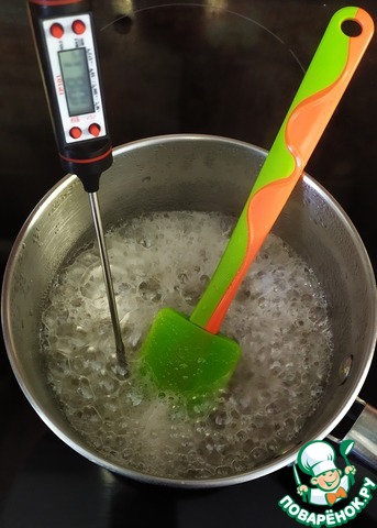 Как только сироп обильно закипит варить 4 минуты на среднем огне или до 110 градусов.