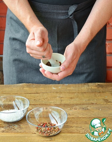 - Смесь перцев (черный, белый, зеленый, розовый душистый) — по вкусу