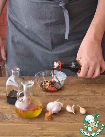 Для приготовления соевой макалки: смешайте измельченный чеснок, хлопья чили (или измельченный свежий чили), масло и соевый соус. Добавьте яблочный уксус. Масло в этой макалке не обязательный компонент.