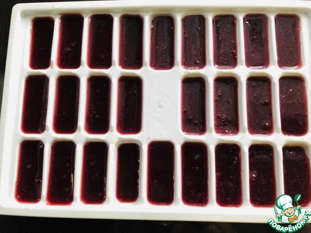 - Заполняем формочки для льда ягодной массой ( лучше использовать силиконовые формочки) и убираем в морозильную камеру до полного застывания.