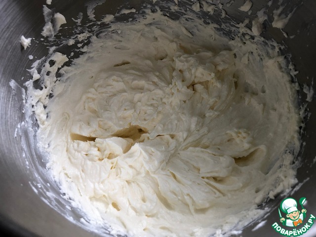 - В чаше миксера соединяем сливочное масла комнатной температуры, творожный сыр, сахарную пудру. -