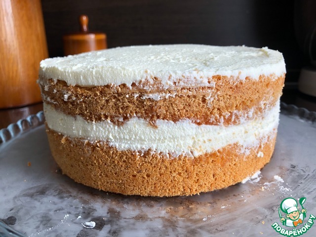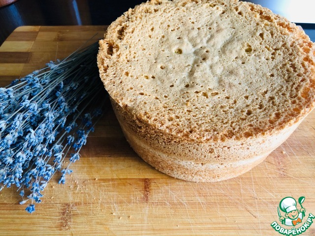 - Остывший бисквит разрезаем на три коржа (нам понадобится только два коржа)
