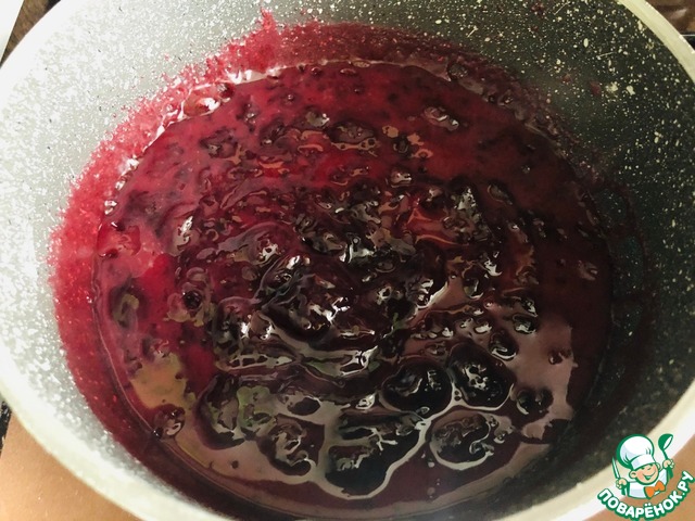 - В сотейнике смешиваем ягоду и крахмал ( если ягода у вас замороженная воду добавлять не нужно, а если свежая добавьте 50 мл. воды), ягоду на медленном огне доводим до кипения и снимаем с огня.