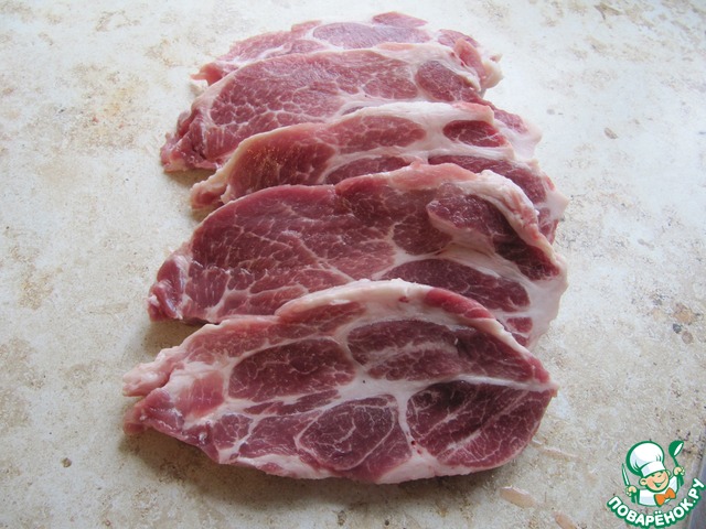 Мякоть свинины (в идеале шейная часть, но подойдут и другие части туши с жирком) нарезать кусочком.