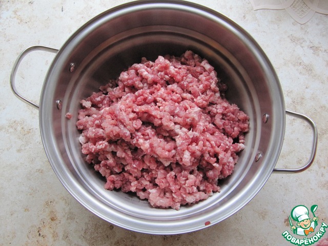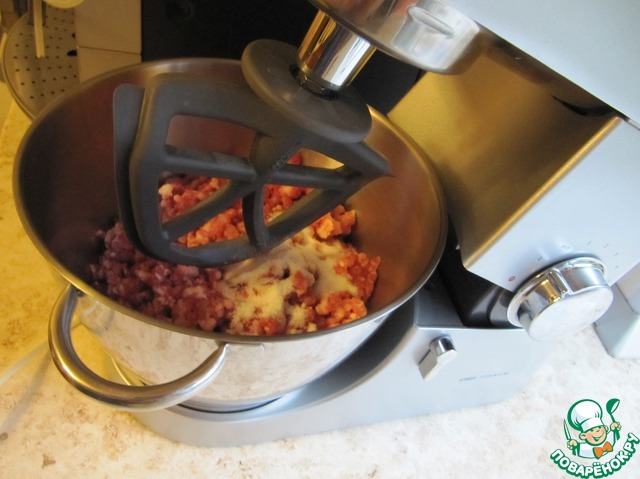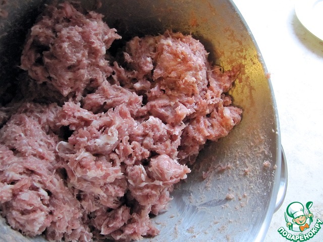 Охлажденное мясо измельчить один раз на мясорубке с решеткой диаметром 6 мм.