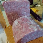 Вкусная домашняя колбаса с ярко выраженным мясным вкусом и ароматом, приготовленная в ветчиннице. Процесс приготовления достаточно простой. Из 1,5 кг сырого мяса на выходе получилось 1,1 кг готовой колбасы. Колбаса по консистенции плотная (так как ветчинница хорошо прессует фарш), режется тонкими ломтиками, не крошится. В составе присутствует нитритная соль, которую можно заменить обычной поваренной солью ( если вы не используете ее в приготовлении), но при этом не сохранится мясной цвет в готовом изделии. Угощайтесь!