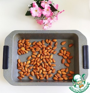 Миндаль запечь в духовке в течение 10-15 минут при температуре 160 градусов. Остудить.