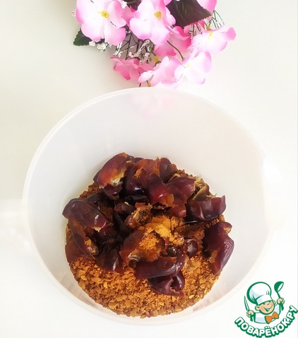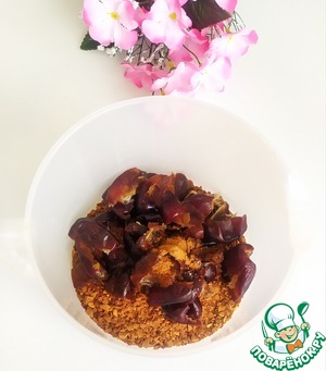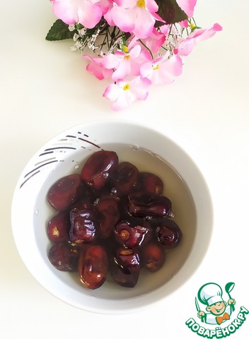 Финики залить теплой водой и подождать пока размякнут. Вынуть косточки.