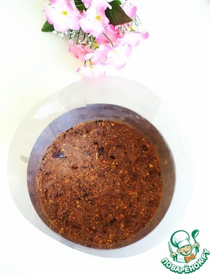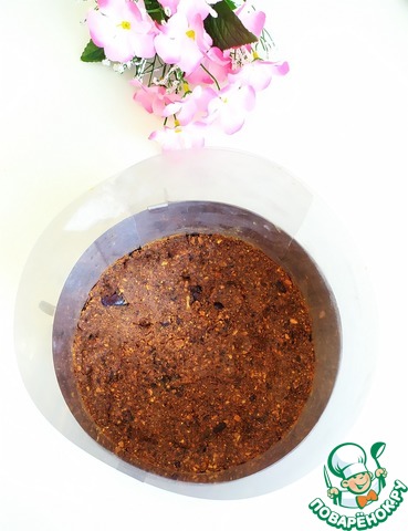 Уложить миндально-финиковую массу, формируя основу. Очень удобно это делать слегка смочив руки холодной водой.