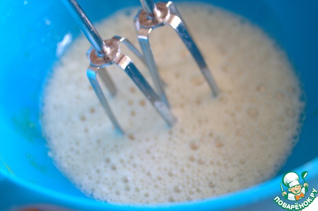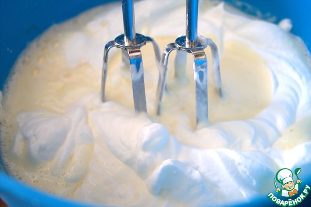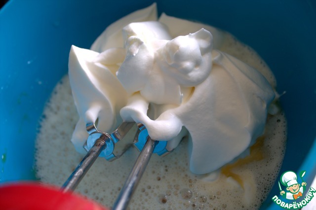 По рецепту допустимо брать сливки или густую жирную сметану. Я взбила сливки.