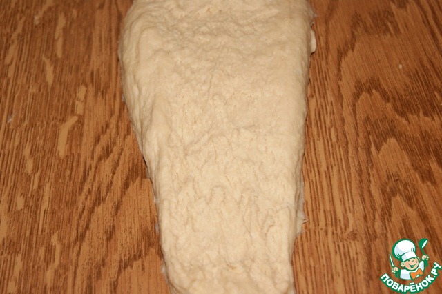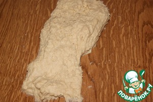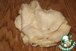 ... растягивая по поверхности в разные стороны... с каждым разом тесто все меньше и меньше будет липнуть к рукам и рабочей поверхности...