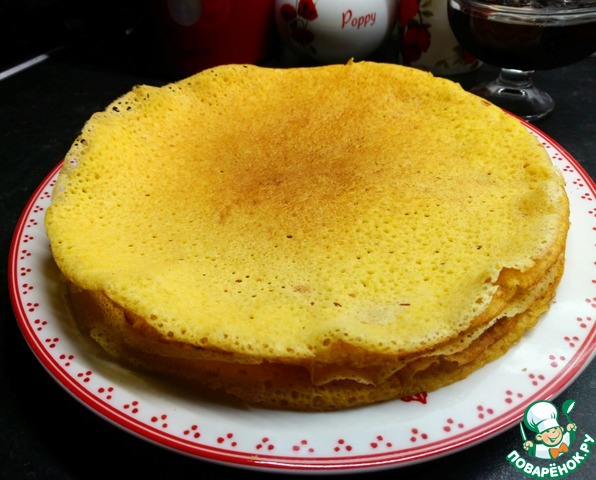 Моя мамуля - большая любительница кроссвордов, регулярно покупает себе журнальчики, где частенько печатают рецепты и она обязательно делится со мной особо понравившимися. И вот один из них - аппетитные, яркие блины на ряженке и молоке с кукурузной мукой!