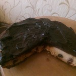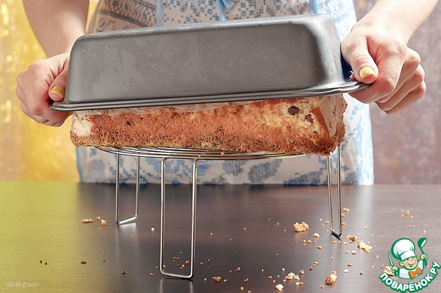 Перед подачей снова убрать в холодильник, чтобы там сырник разморозился и еще немного пропитался.