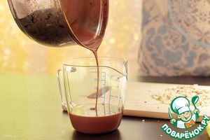 Пока он замораживается, растопите на водяной бане шоколад с маслом и перемешайте.