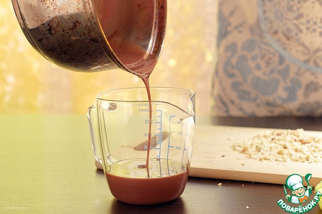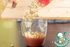 Вмешайте орехи в глазурь и доведите ее в холодильнике до комнатной температуры. Такая глазурь называется Гурмэ или Роше. Она очень вкусная.