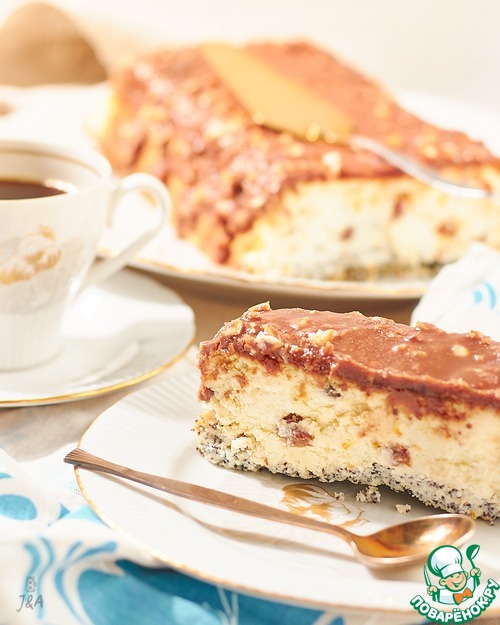 Готовый сырник остудить в выключенной духовке, затянуть пленкой и убрать в холодильник. Чем дольше он там стоит, тем вкуснее. Минимум- ночь. Утром убрать сырник в морозилку на 1 час.