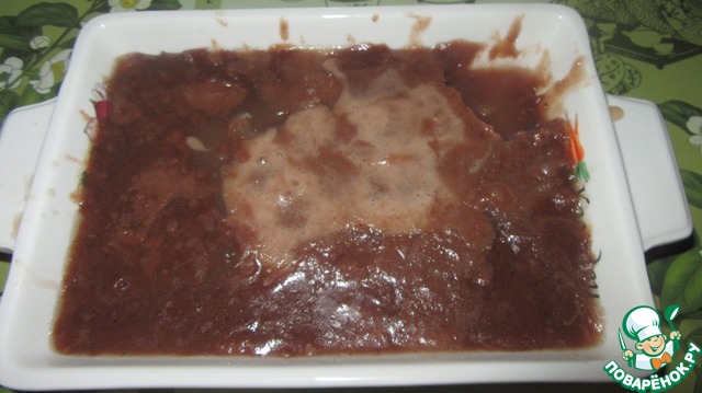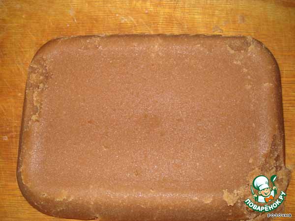 Вылить в форму (я использовала пластмассовый контейнер) и дать постоять, чтобы немного застыл (5-10 минут).