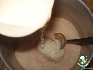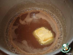 Поставить на огонь и дать закипеть. Постоянно помешивать. После закипания добавить сливочное масло.