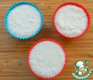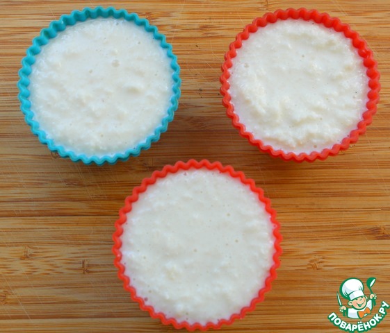 Выложить кокосовую массу в формочки для замораживания.