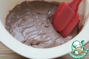 Не прекращая взбивать, уменьшить скорость и добавить 3/4 бригадейро, добавить соль и 1 ст л какао-порошка - хорошо взбить до однородности.