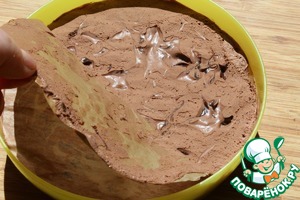 Накрыть пергаментом в контакт, чтобы не образовались кристаллы льда, убрать мороженое в морозилку на ночь.