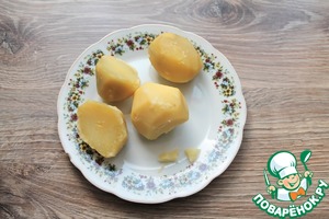 • Картофель почистим и отварим в соленой воде до готовности. Вынем картофель на тарелку и остудим.