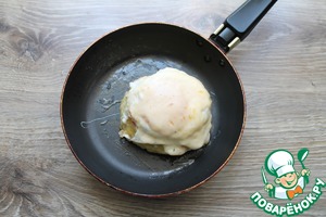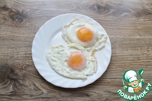 • На сковороду нальем масло, разогреем и обжарим яйца. Переложим их на тарелку.