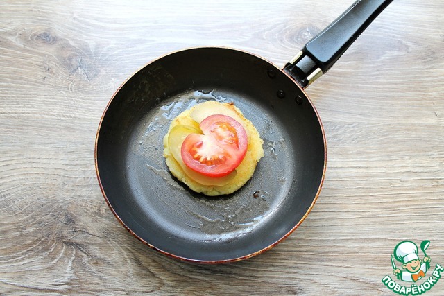 • Теперь кладем кружочек помидоры.