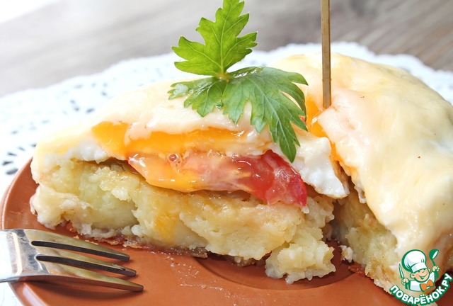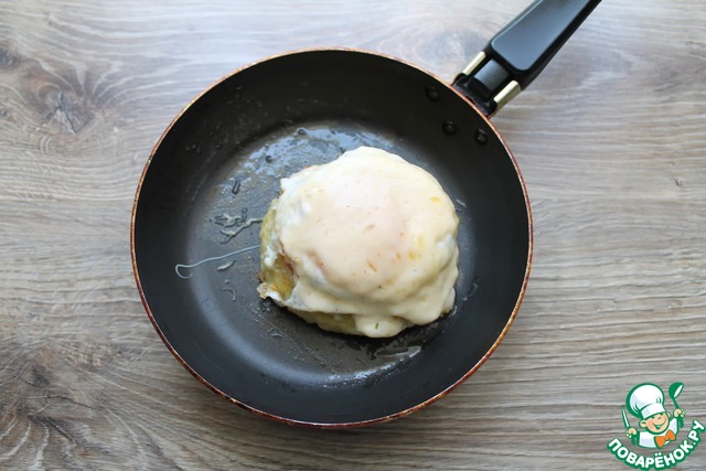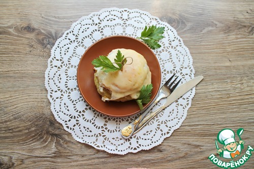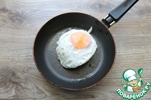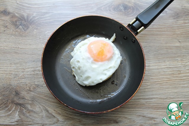 • Укладываем сверху обжаренное яйцо, посолим.