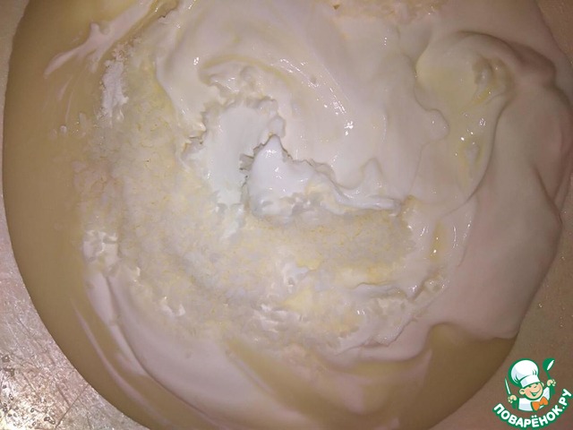 Все вышеуказанные ингредиенты для первой части творожного крема соединить в глубокой миске
